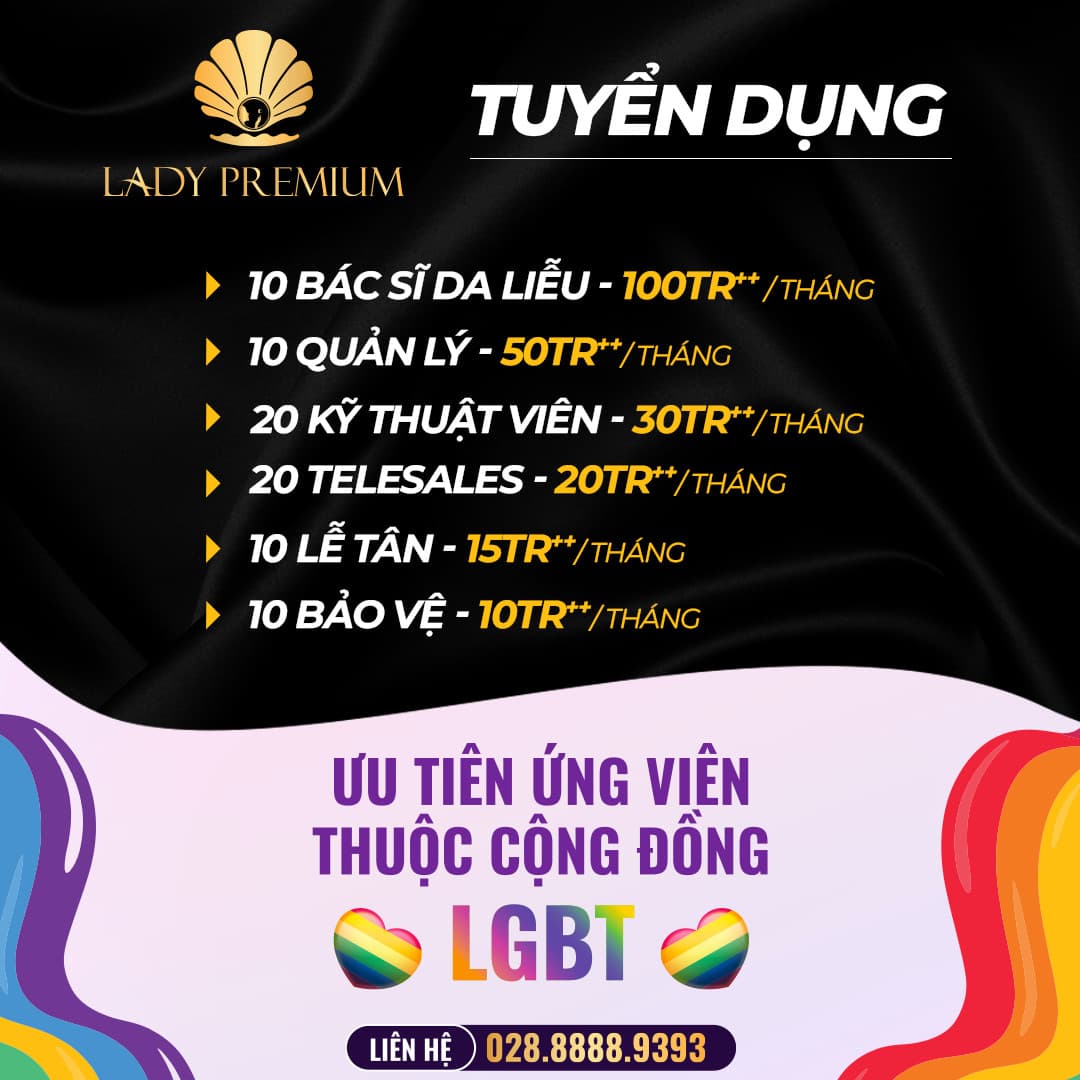 🏳️🌈 Ưu tiên ứng viên thuộc cộng đồng LGBTQ+ Nhằm mở rộng mô hình kinh doanh trong năm 2022, Lady Group cần tuyển dụng các vị trí như sau: